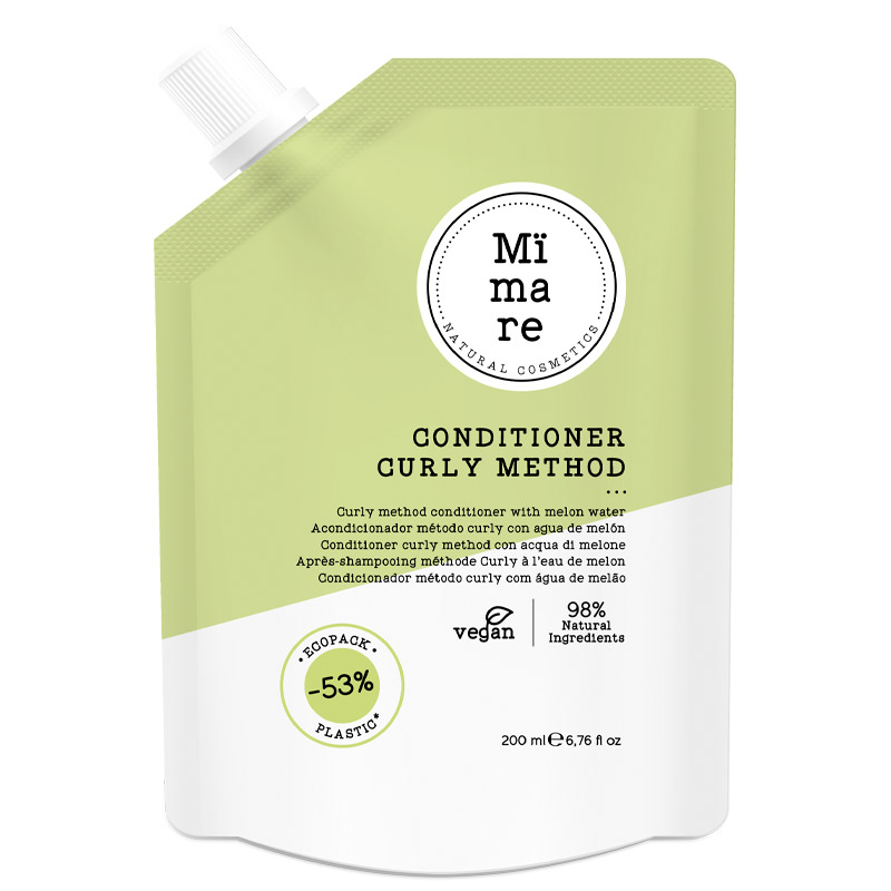 Acondicionador con agua de melón especial para cabello rizado u ondulado. Desenreda instantáneamente aportando suavidad y brillo. Con leche de arroz y aloe vera.